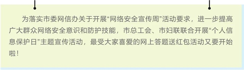 关注“徐州总工会”或“徐州市妇联”微信公众号,点击下方菜单栏中的【答题送红包】,即可参与在线学习抽红包。每天随机五道题,答对三题即可进入抽奖环节。