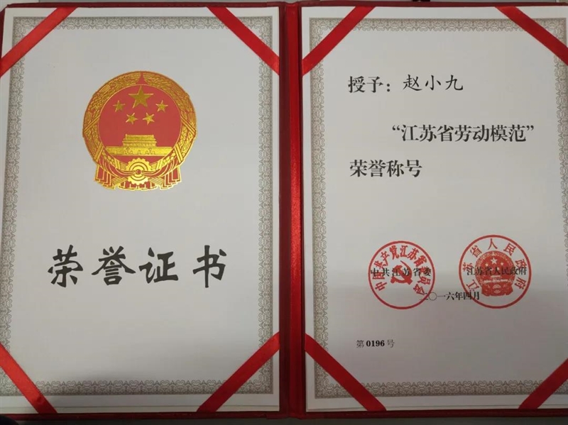 2008年,赵小九大学毕业后进入晋煤恒盛化工集团,成为一名基层员工。多年来,作为一名党员,她事事走在前,不管岗位多辛苦,担子多重,都愿意接受挑战;作为一名劳动模范,她勤奋敬业,始终默默地奉献在生产一线。不怕脏、不怕苦、不怕累,与男同志一起装卸触媒、拆装阀门、爬高上低、加班加点,从无怨言。她多次荣获公司“先进个人”与“操作能手”称号,先后被评为徐州市劳动模范,江苏省五一劳动奖章,江苏省劳动模范,全国五一劳动奖章。