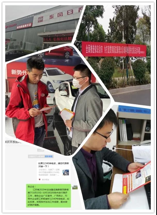 深入企业广泛宣传。经开区各部门立即行动,积极组织志愿队伍,深入园区维尤纳特、利民化工、紫聚石化、京沂电器等各大企业开展法治建设满意度宣传活动,区规划建设局、建发公司深入到滨河花园、科创园、世纪豪都等一批在建工地,向广大民工朋友开展法治建设满意度宣传活动。通过发放宣传彩页,提供现场咨询服务活动,向广大职工宣传近年来新沂市法治建设成果,讲解“12340”热线的重要意义及具体测评办法,同时邀请职工朋友对当前的社会治安状况、文明公正执法、打击违法犯罪及扫黑除恶专项行动工作成效等方面进行评测,进一步提升群众安全感和满意度。