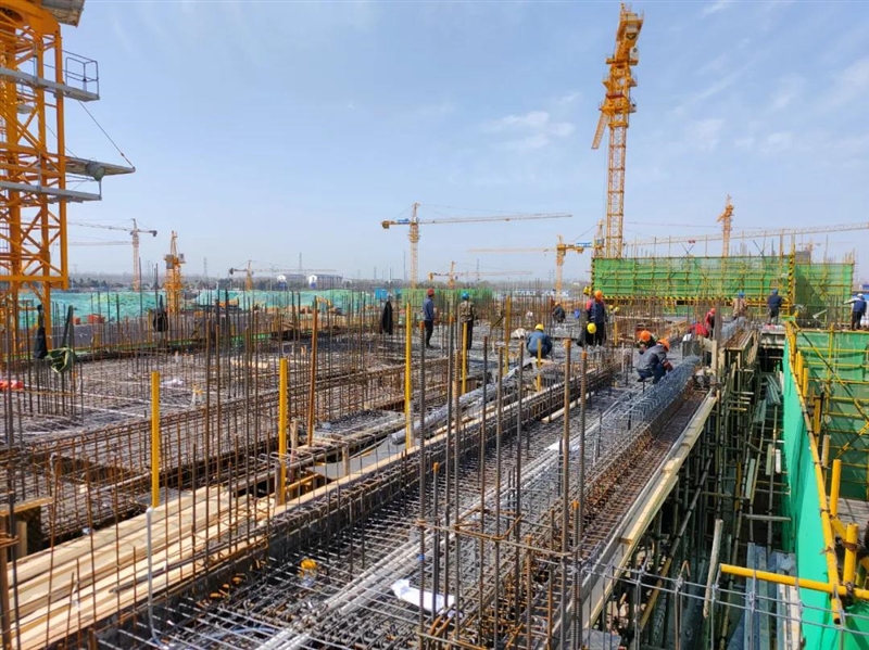 前不久,新沂市融媒体中心记者在施工现场看到,工人们正在进行钢筋绑扎和主体结构模板制作安装,各类机械设备不停运转,现场一片繁忙。